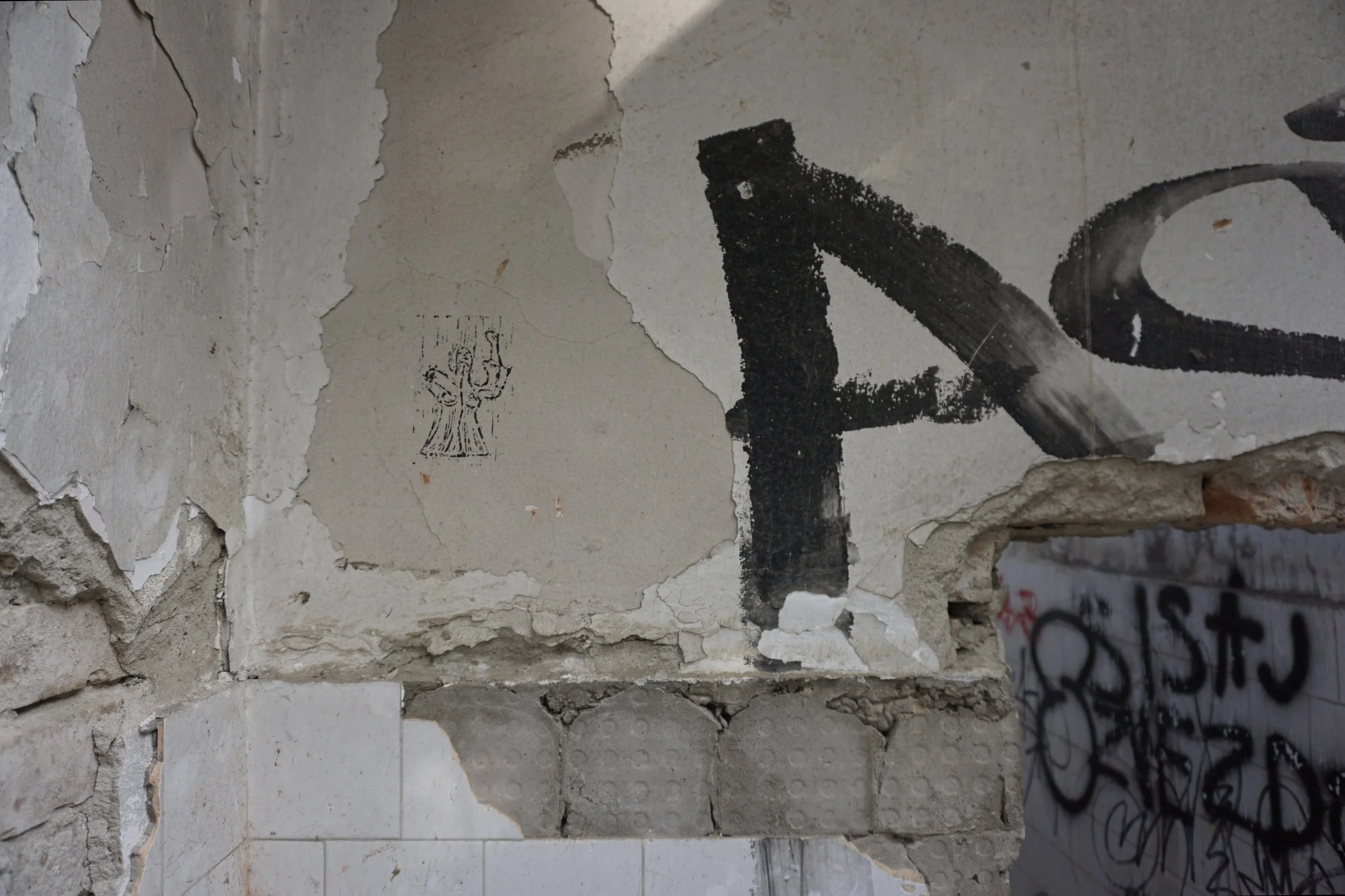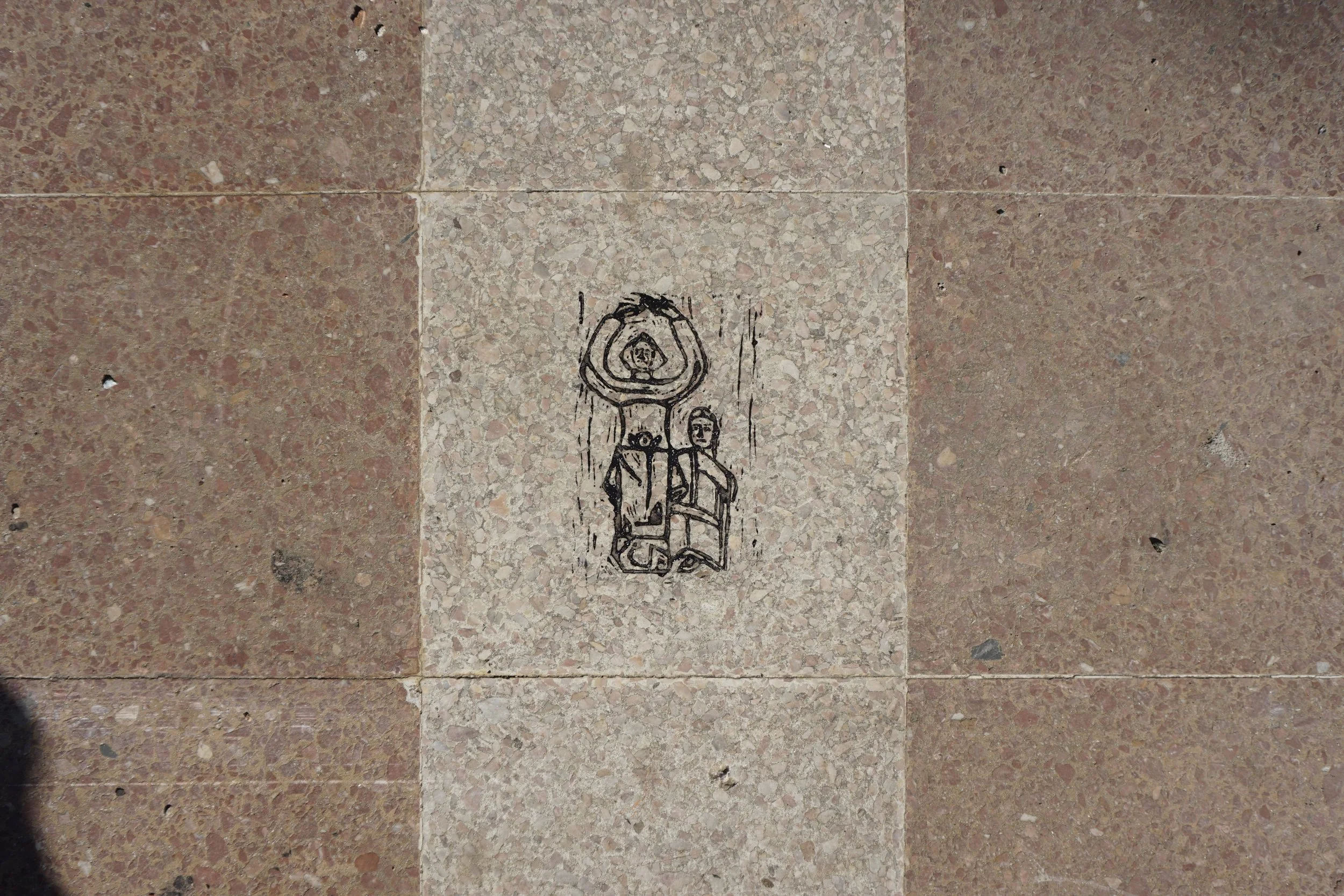 Lino cut & acrylic paint on urban textures